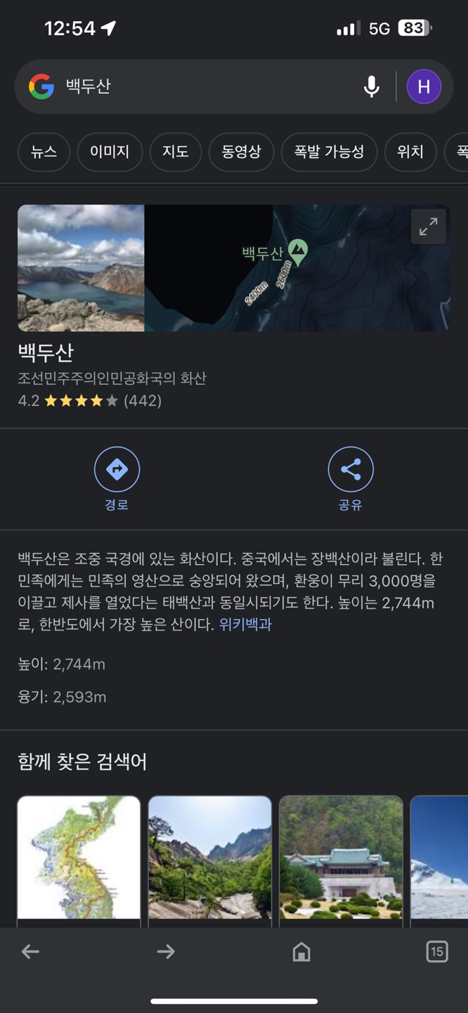 라멜라우산과 백두산 높이 비교사진 첨부해봅니다